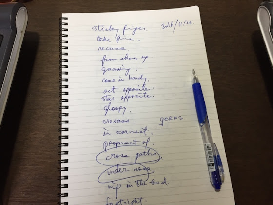 私の英語ノートにはまだまだ記事にすべきことが山積と言った具合だ。上から、rain on parade, gun for fire, stock in trade, to the victor belongs the spoils, mean-spirited, if yo so desire, like a dog with a bone,,,,限(きり)が無い。